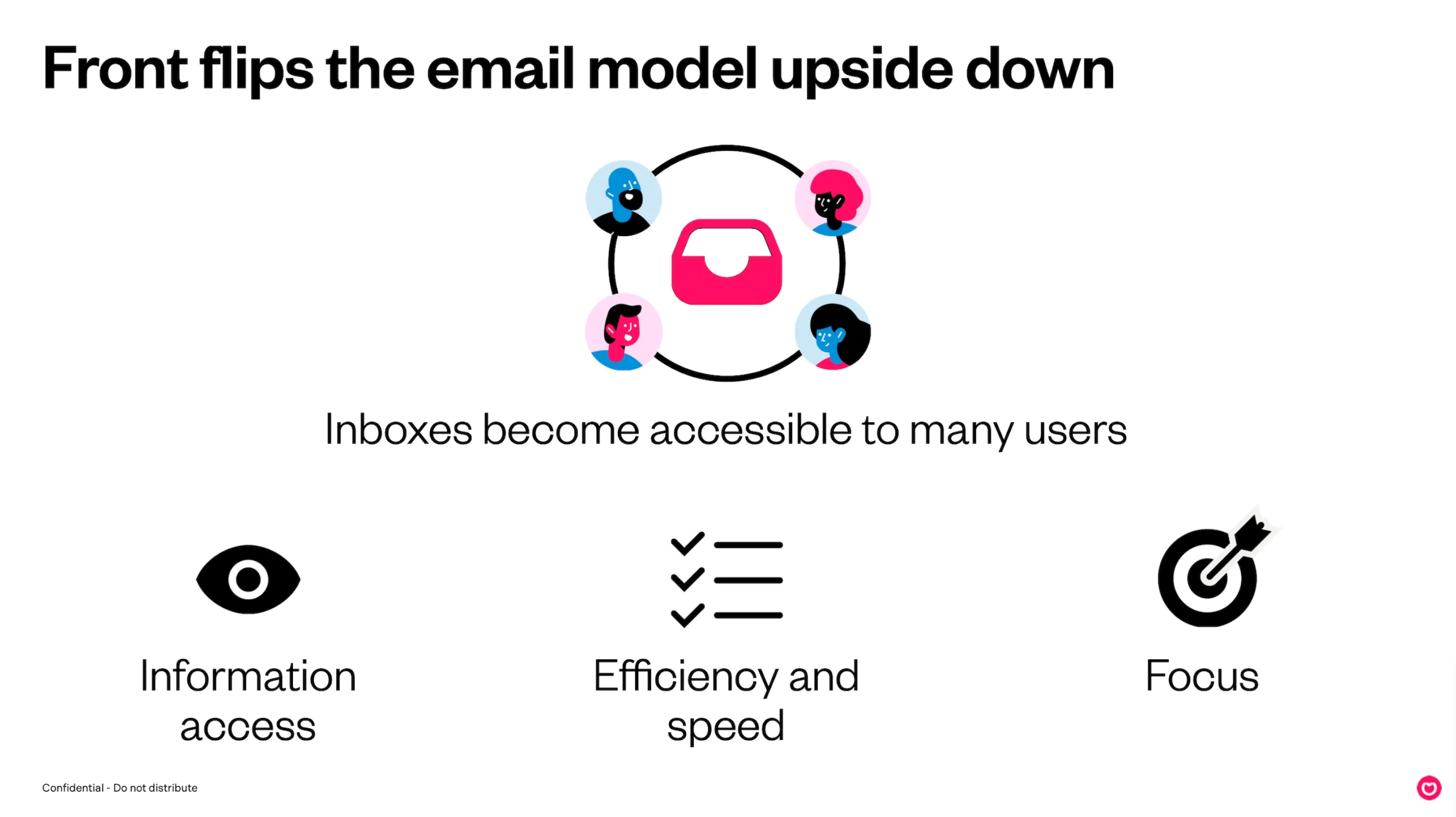 Front’s pitch deck is a textbook example of a well-structured, polished presentation. It follows a classic flow — from problem and solution to customer feedback, acquisition strategy, financials, and team — hitting every point investors expect to see.