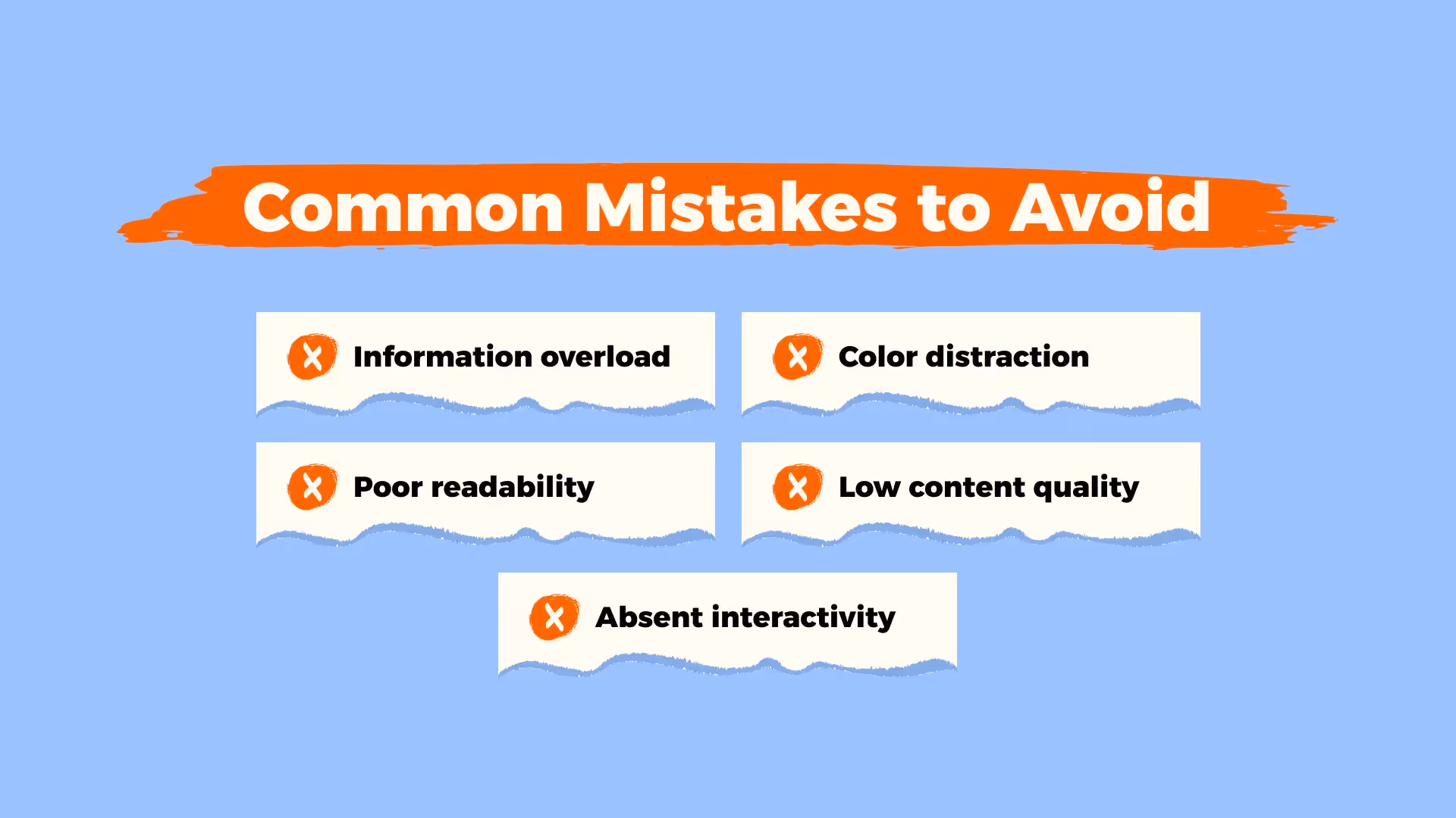 - Information overload. Use white space to avoid clutter and hand-pick information you want to add to the template.