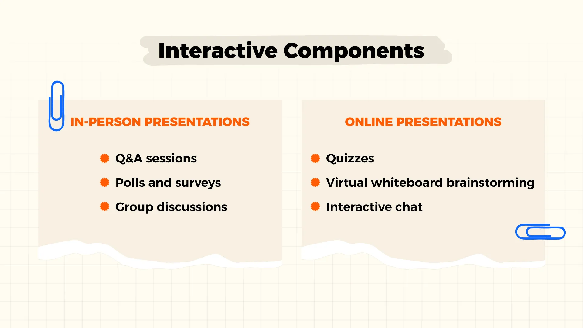 Another effective option to present valuable data is to engage with the audience directly. You can come up with interactive presentation elements such as handout ideas for presentations, Q&A sessions, polls, and surveys.
