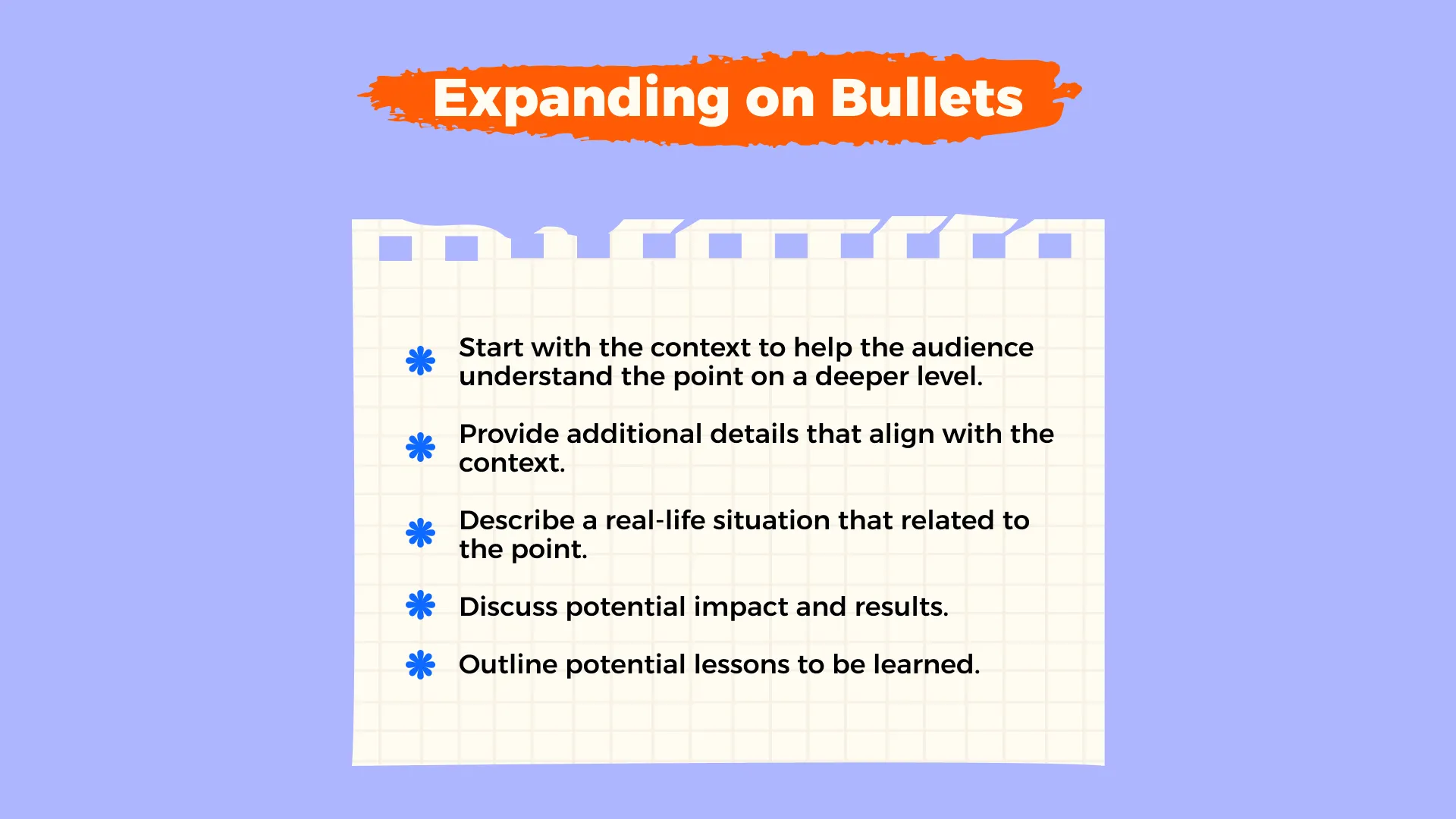 Bullets are used to keep the presentation to the point and concise. However, you can dwell on each to make the presentation compelling and informative at the same time.