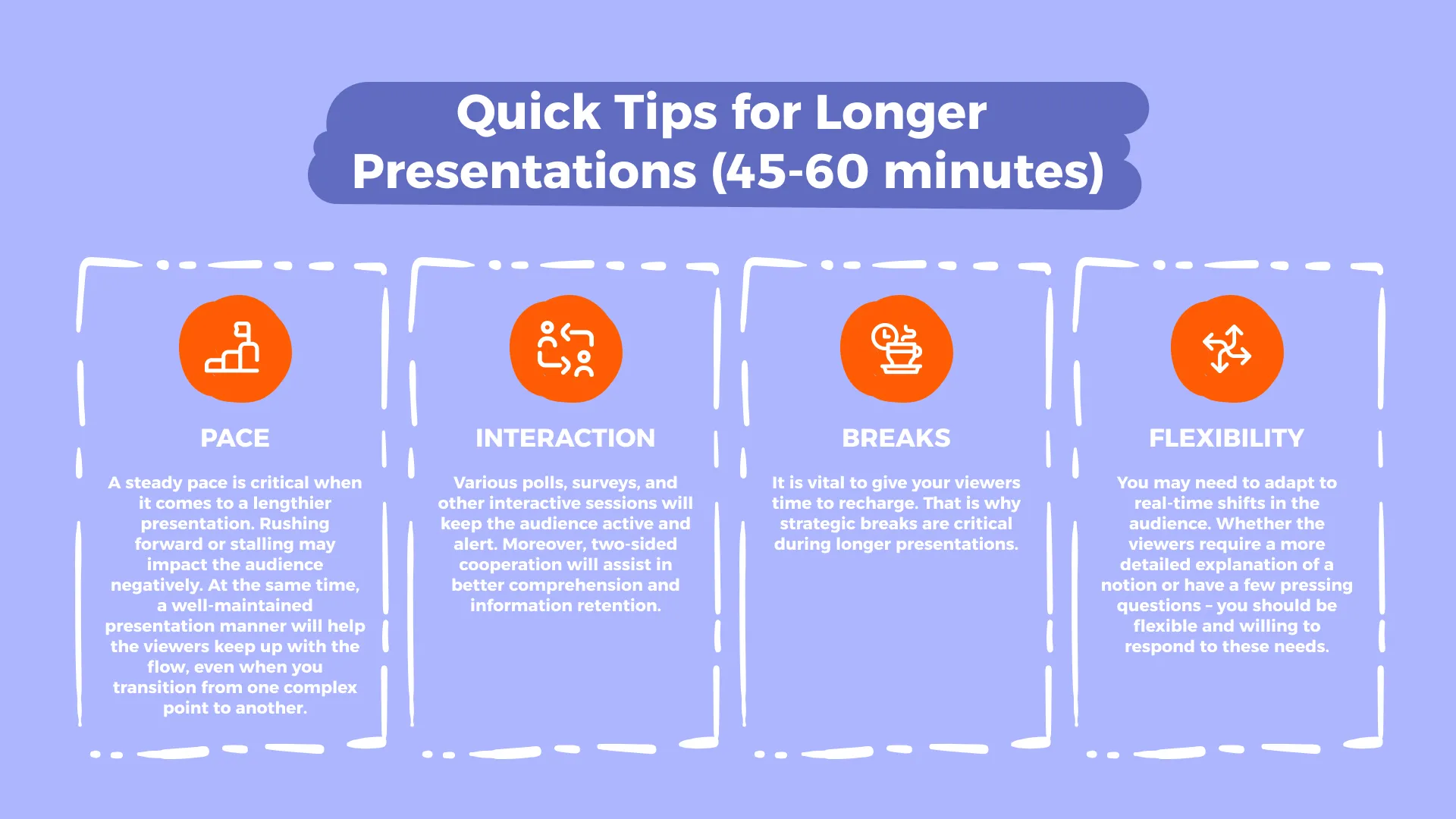 An hour-long presentation isn't something out of the ordinary, but it requires a fair share of practice to rock it. When you think about how to make a presentation longer, you should realize that presenting as many slides as possible isn't a great solution. There are many other tricks and techniques that will help you succeed with the task without losing the interest of the audience.