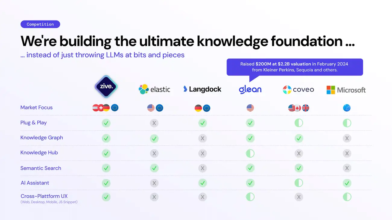 Examples of competitive slides from real pitch decks