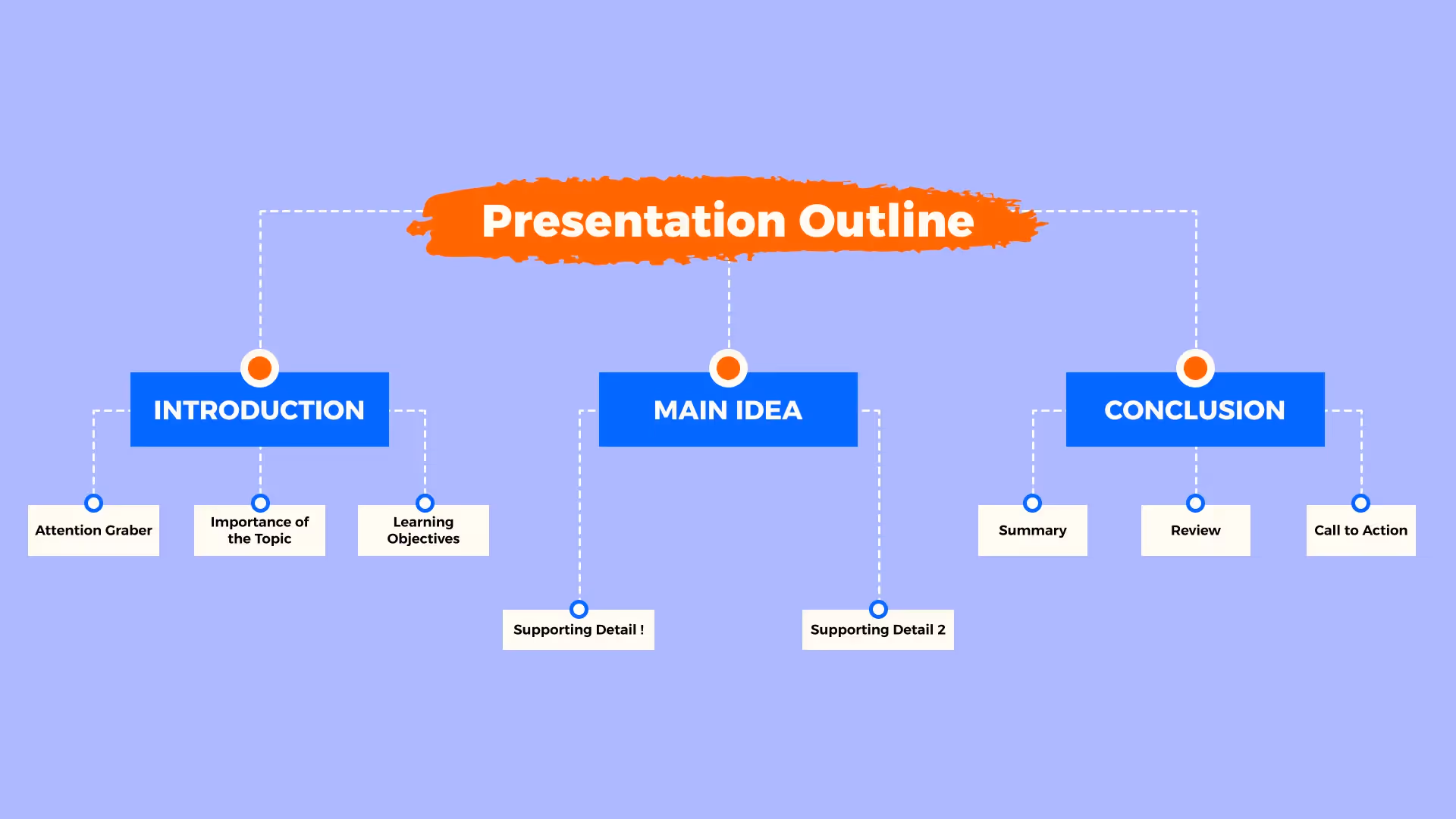 Since we are discussing what is an outline for a presentation, we want to draw your attention to a standard presentation outline format and the main components it relies on. They are the following: