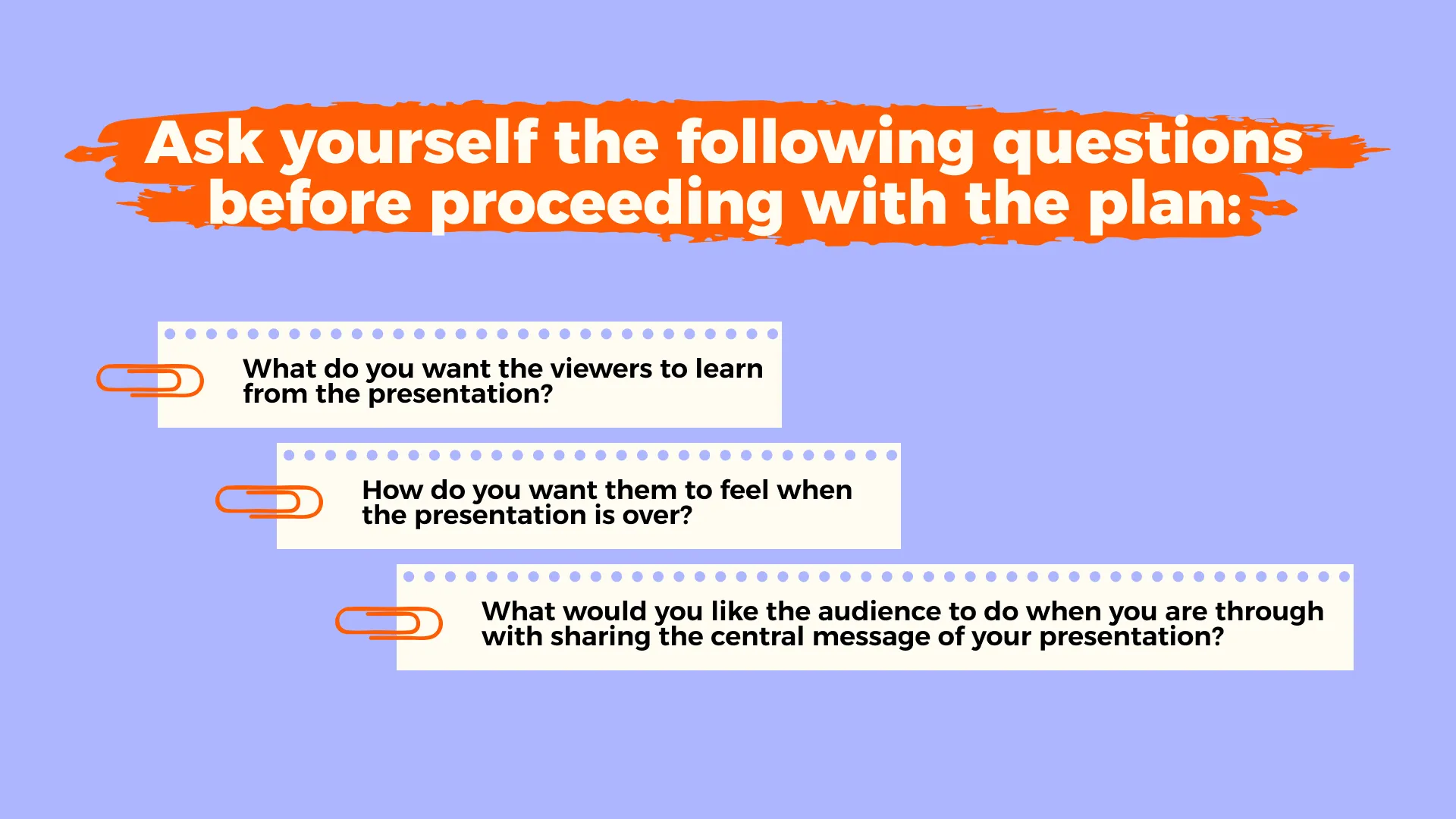 Answers to these simple questions will help you define a clear goal and align every component of the presentation with it.
