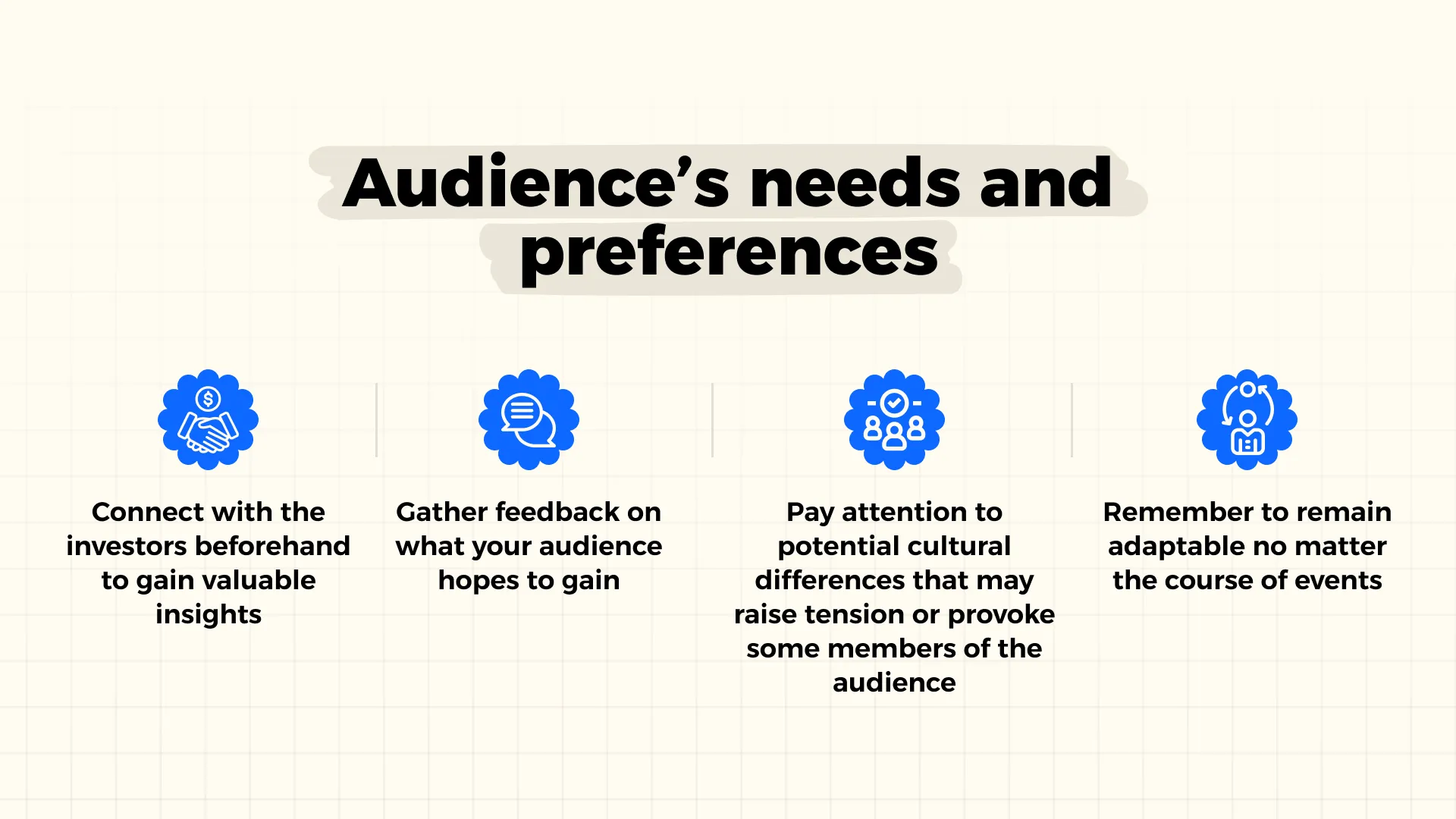 One of the simplest points to miss when working on your presentation outline template is the audience’s needs. Suppose you don’t know their level of expertise in the field, their primary interests, main pain points, past interactions, and potential expectations. In that case, you may design a presentation that either overwhelms the viewers or loses their interest after a few minutes.