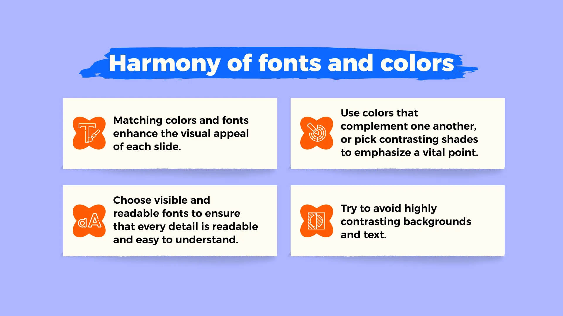 - Use colors that complement one another, or pick contrasting shades to emphasize a vital point.