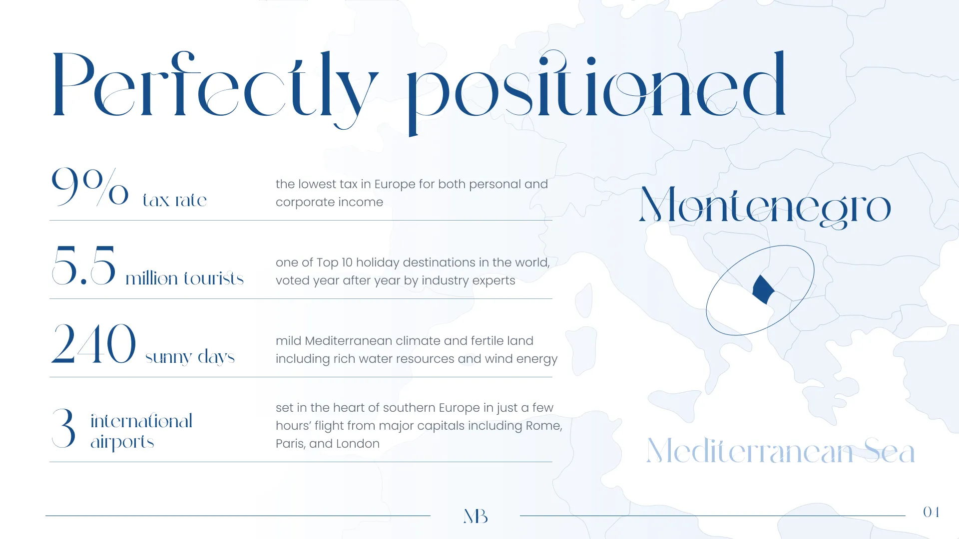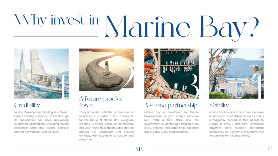 The client needed an elegant and aspirational investment deck to present their premium real estate project in Montenegro. The goal was to attract investors by showcasing the unique location, lifestyle benefits, and growth potential of the development.